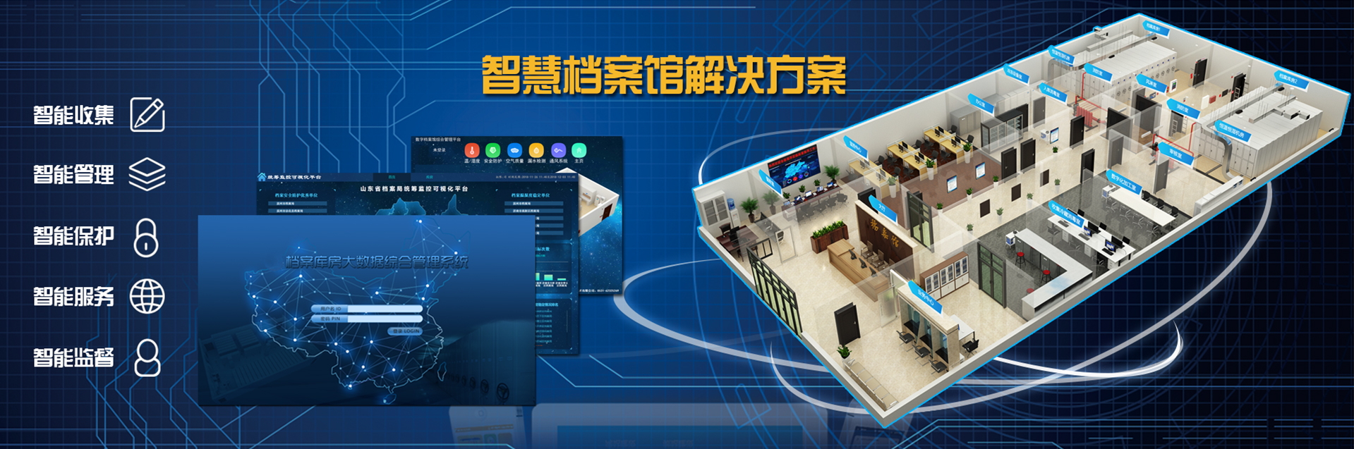 國韻作為山東省檔案庫房智能化綜合管理系統建設的龍頭企業,為濱州市市政府設計并建設了一整套檔案庫房智能化綜合管理系統,該系統將溫濕度自動測控、智能防火、智能防盜、消毒滅菌、漏水檢測、通風換氣、照明測控、視頻監(jiān)控、門禁管理、防鼠防蟲、有毒氣體檢測顯示系統等集成于統一管理平臺...